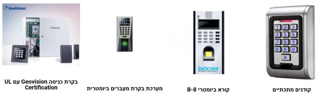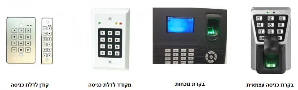 • מערכת קוראת אצבע – כנ"ל אך במקום תג – המורשה מניח את אצבעו על קורא טביעת אצבע .